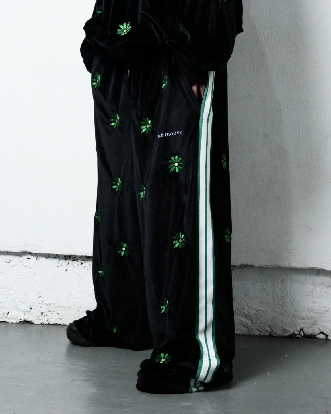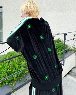 SSSフラワーロゴを全面総柄刺繍したベロアライクなSET UP