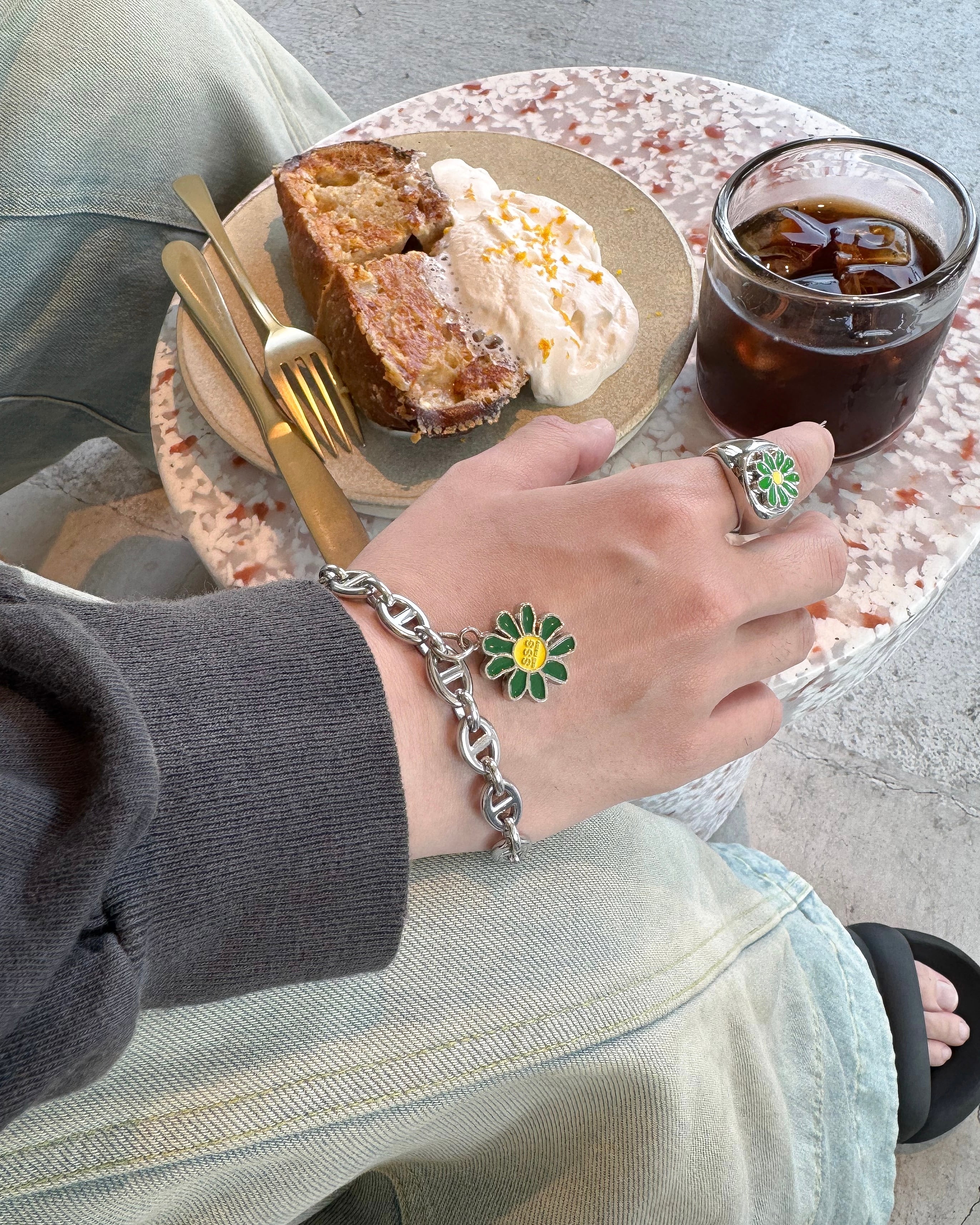 無骨すぎず、上品すぎない絶妙なバランスに、差し色のカラーチャームがアクセントに。