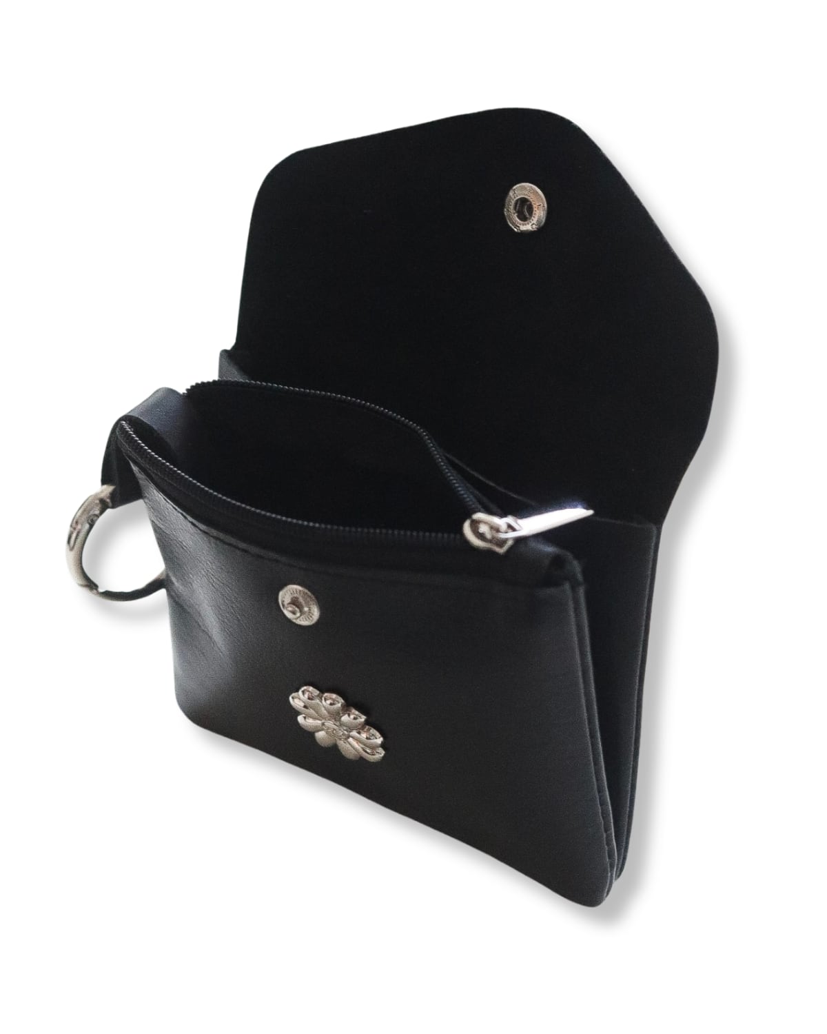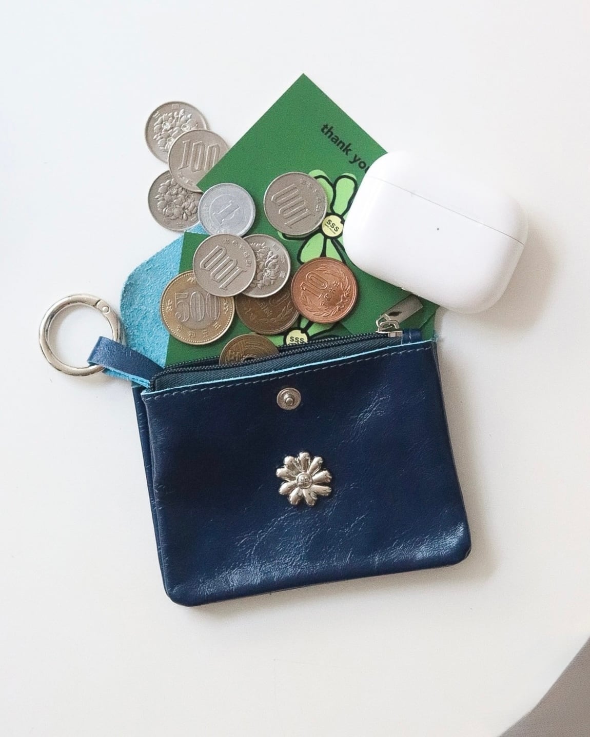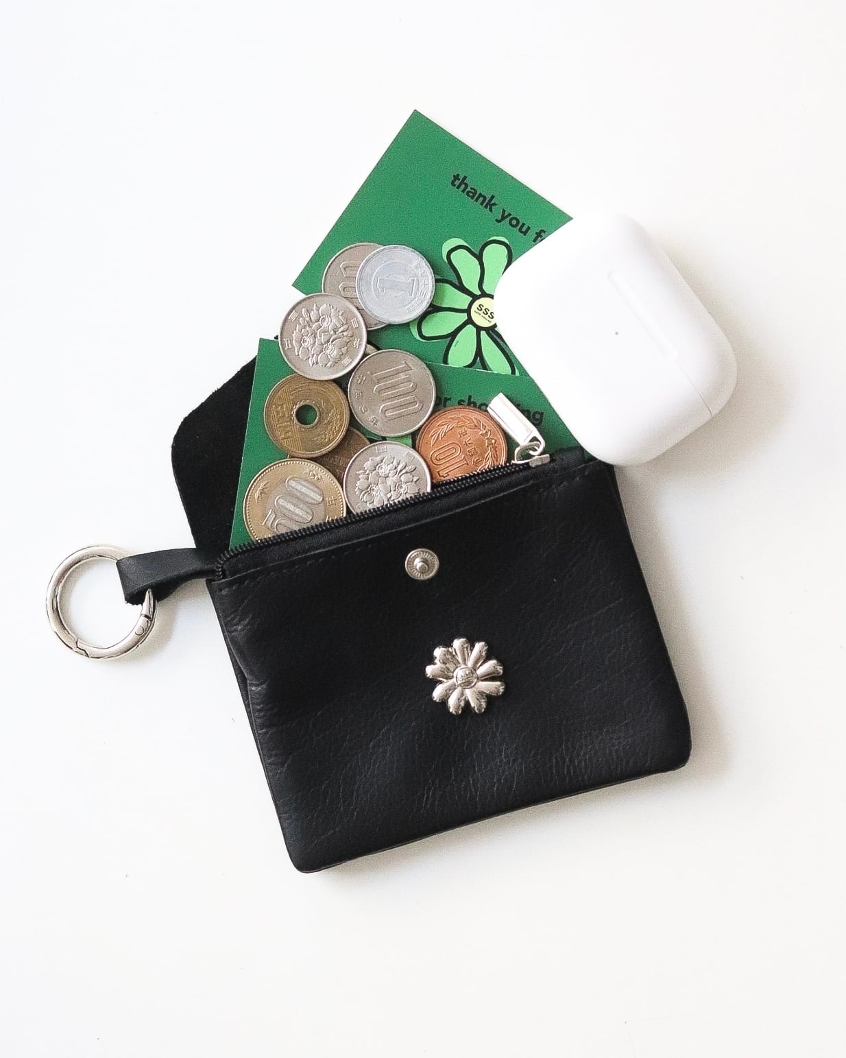 柔らかいフェイクレザーを使用しているため、容量もたっぷり。コインだけでなく財布としてカードやお札も収納可能で、鍵などの小物も収納できます。