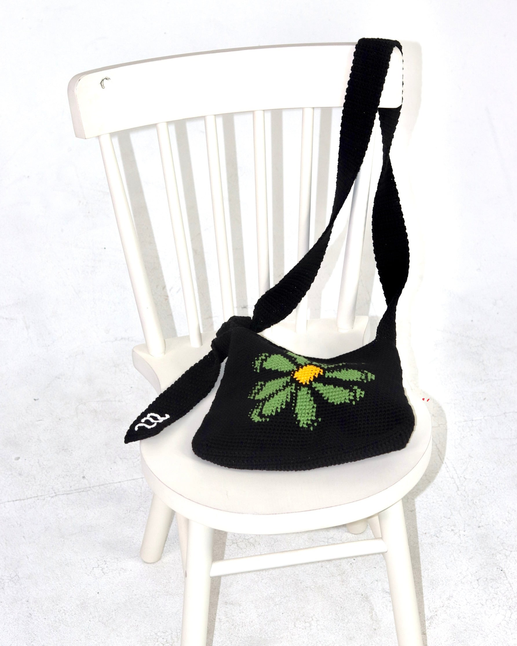 ブラックカラーに花柄模様が映えるサコッシュ。