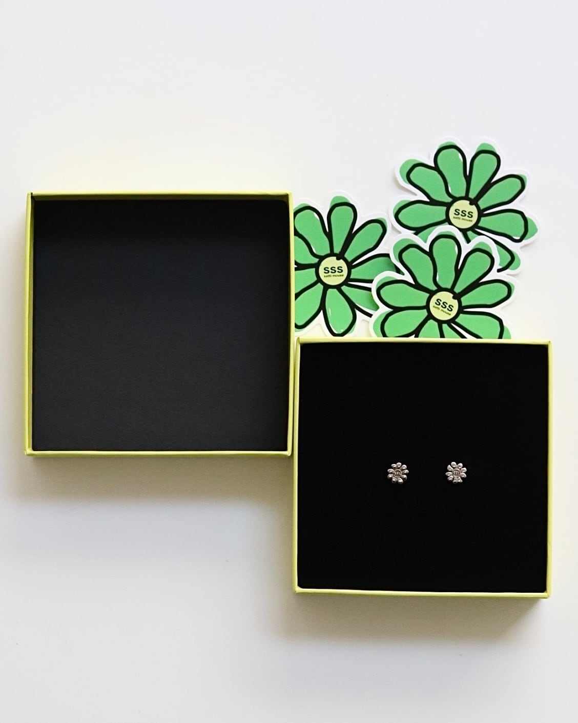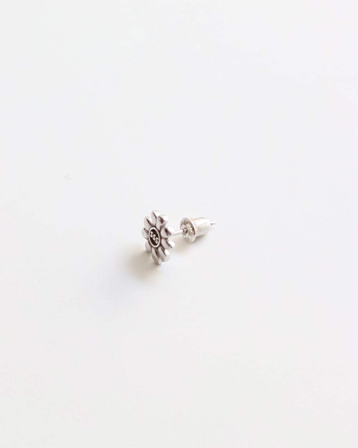 フラワーロゴがモチーフのシルバーピアス。