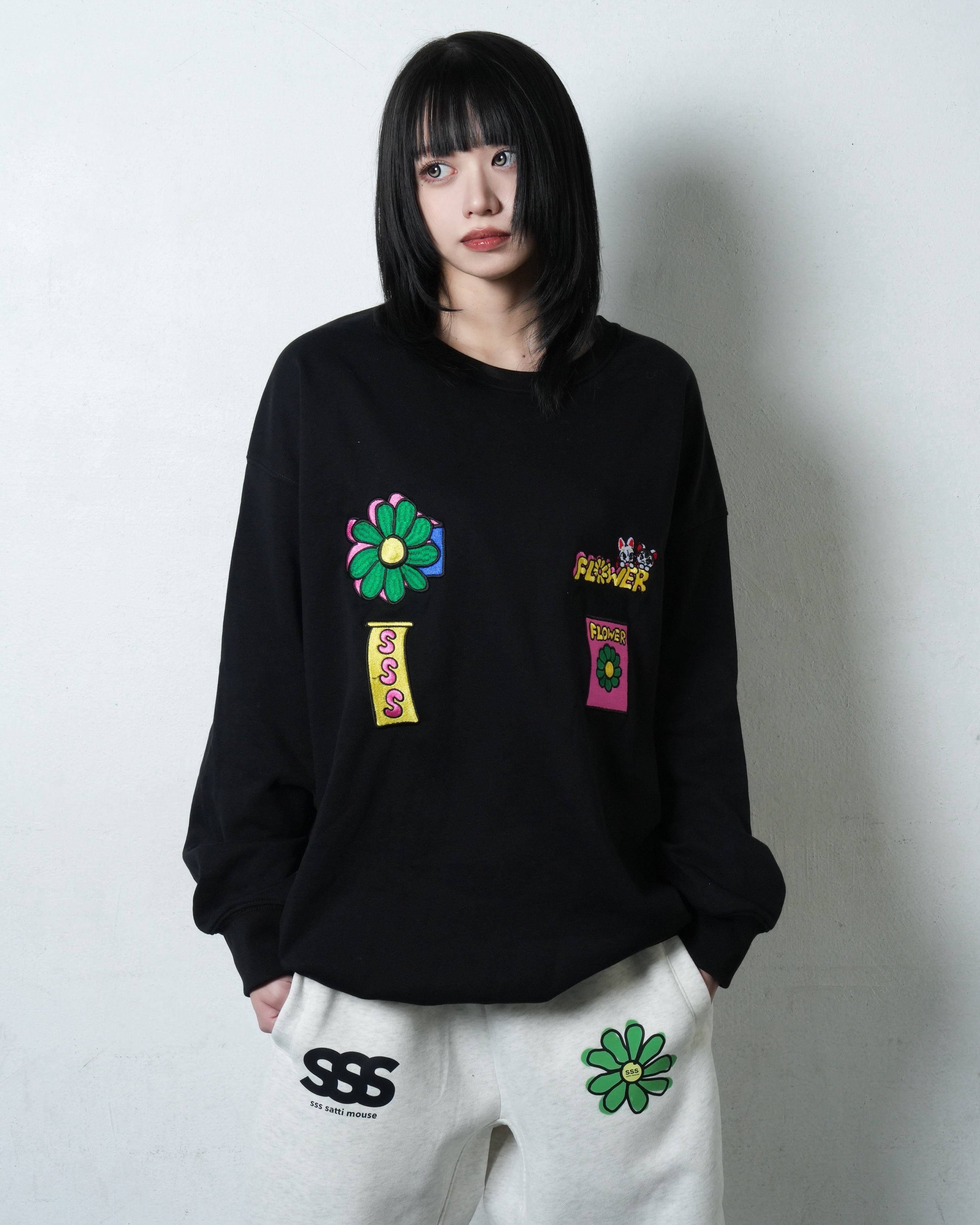 前面は、SSSの花屋をモチーフにした看板イラストをプリント仕上げ。華やかで繊細な刺繍を施した全刺繍仕上げでインナーとしての着用でもデザインが際立つ仕上がりです。