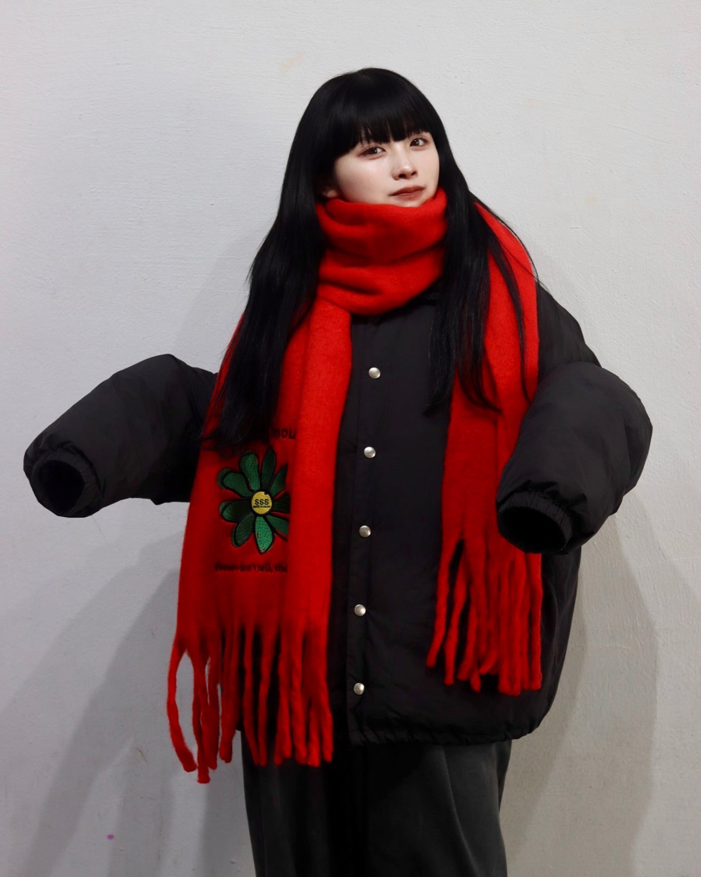 万能なカラー展開で、素材はふんわりと柔らかく、チクチク感もなく、肉厚な生地なので冬の寒い時期でもしっかりと首元を温めてくれるアイテム。