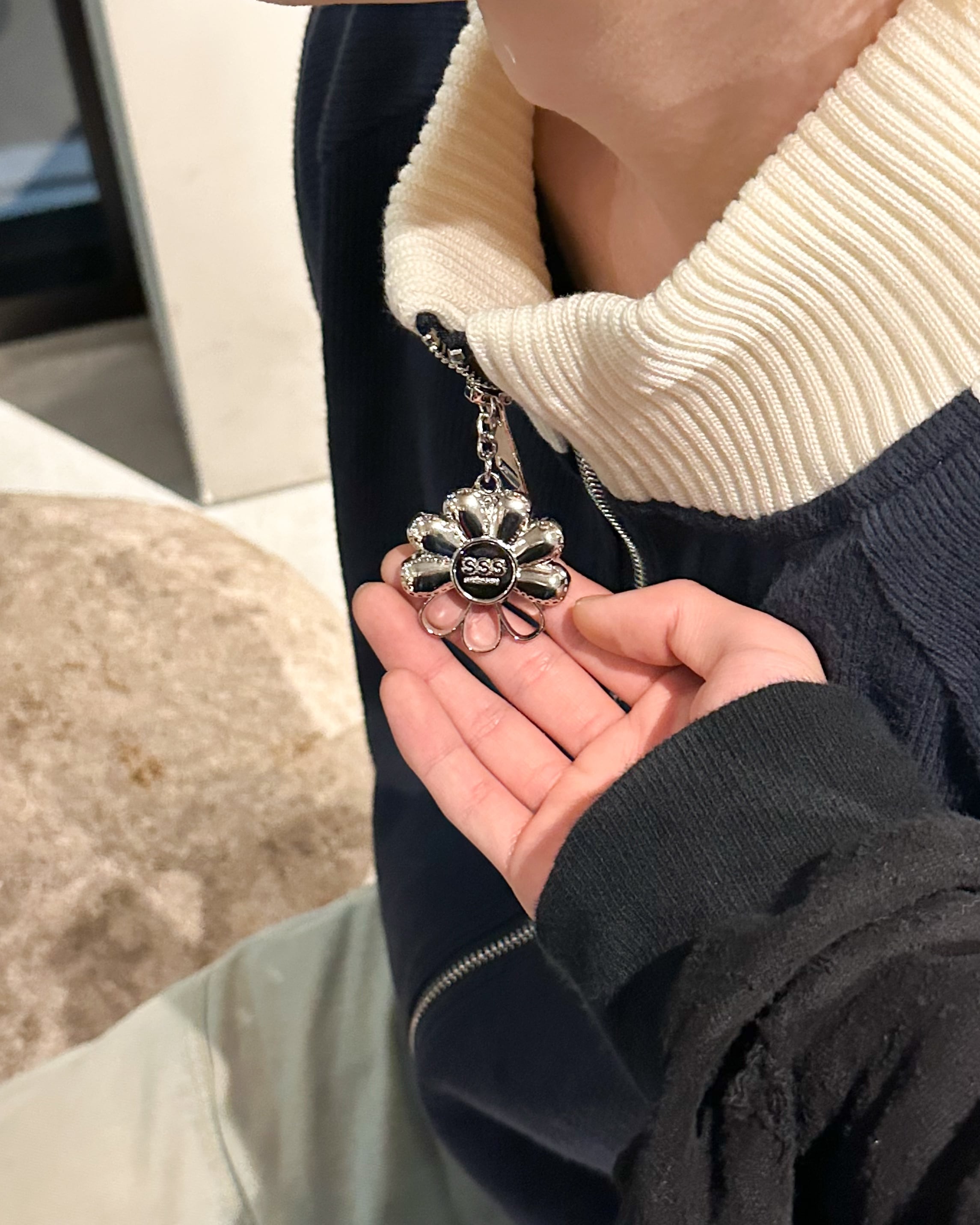 "ロゴシルバーチャームにラインデザインで存在感抜群の仕上がり"